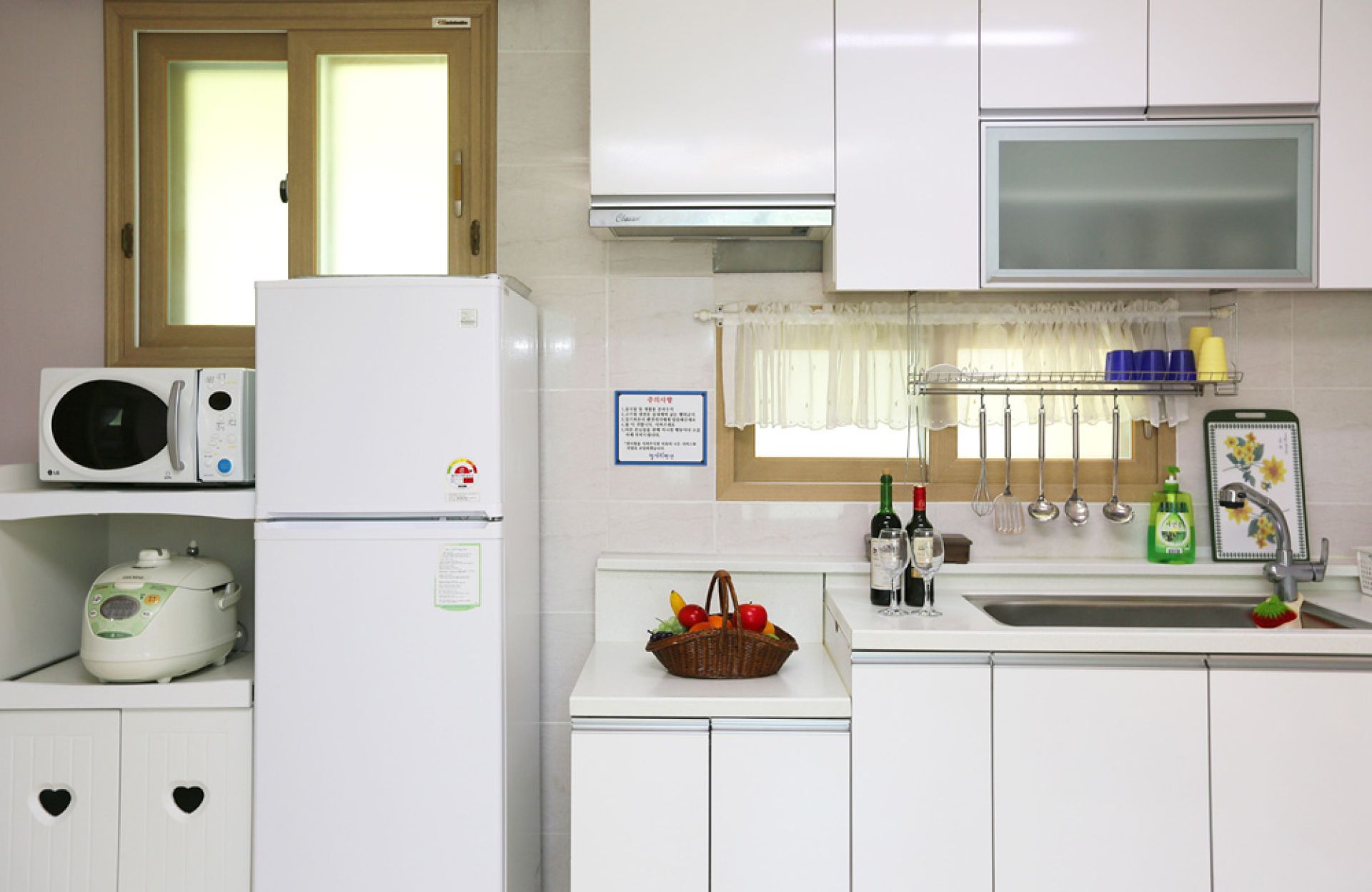 - 시설 : TV, 냉장고, 전자레인지, 취사도구, 침대, 압력밥솥, 샤워실, 드라이기, 무선인터넷사용가능.